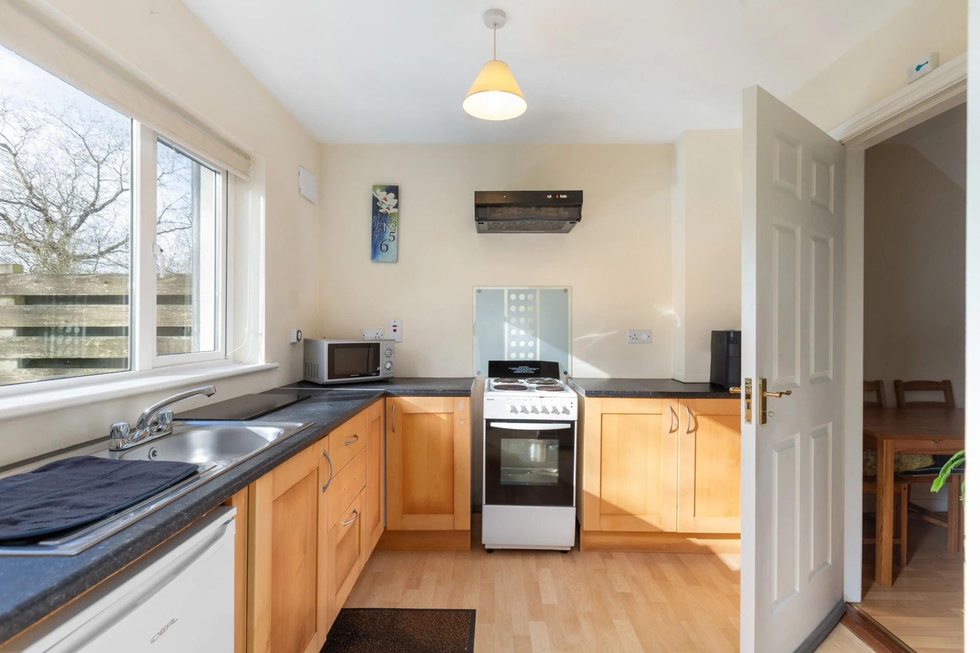 Contemporary fitted kitchen, ample storage, door to the guest WC and garden